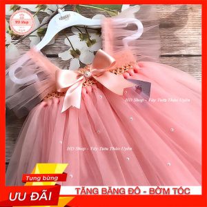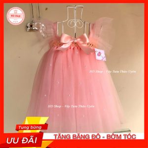 Váy Cánh Tiên Cho Bé Hồng Cam Nơ Đính Đá