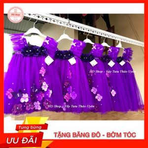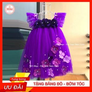 Váy cánh tiên cho bé tím đính hoa hồng ✅ Hàng Chất Lượng Cao ✅ Tặng Kèm Băng Đô, Cài Tóc Cho Bé ✅ Ảnh thật do shop chụp ✅ Mua Online Tốt Nhất